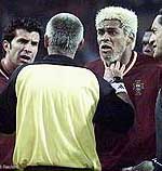 Szomorú emlék: Figo és Abel Xavier vitája Benkö bíróval |